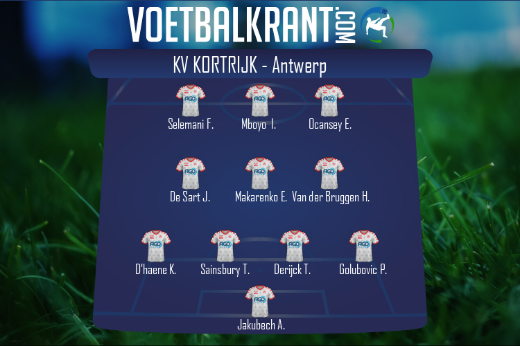 Vooraf: Twee wissels bij Kortrijk, Nsimba en Benson krijgen eerste basisplaats Yves Vanderhaeghe wisselt op twee posities na de nederlaag tegen Standard. Sainsbury en Selemani komen in de plaats van Rougeaux en Dewaele. Ivan Leko grijpt op drie posities in. Batubinsika is weer van de partij, terwijl Benson en Nsimba hun eerste basisplaats van het seizoen krijgen. |
