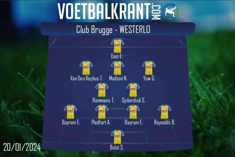 Bank: Axl De Corte - Dedryck Boyata - Eder Balanta - Nordin Jackers - Michal Skoras - Kyriani Sabbe - Antonio Nusa - Ferran Jutgla - Victor Barbera Westerlo: Roman Neustädter - Sinan Bolat - Bryan Reynolds - Arthur Piedfort - Emin Bayram - Sergiy Sydorchuk - Tuur Rommens - Griffin Yow - Nicolas Madsen - Thomas Van Den Keybus - Erdon Daci Bank: Nacer Chadli - Pietro Perdichizzi - Edisson Jordanov - Nick Gillekens - Mathias Fixelles - Dogucan Haspolat - Ravil Tagir - Adedire Mebude - Josimar Alcocer |