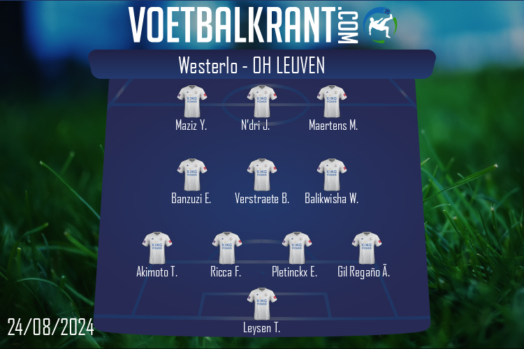 Vooraf: Westerlo-coach Timmy Simons kiest deze elf in strijd om koppositie tegen OH Leuven Westerlo kan opnieuw de leidersplaats veroveren bij winst tegen OH Leuven. Timmy Simons zag Madsen deze week vertrekken, hij wordt vervangen door Alcocer. Meteen de enige wijziging bij Westerlo. Bij OH Leuven noteren we twee wijzigingen ten opzichte van vorige week, er is nu een basisplaats voor William Balikwisha en Ricca. |