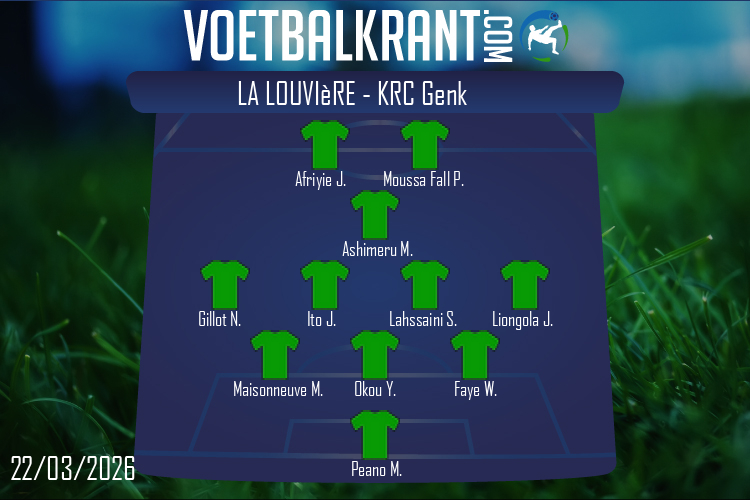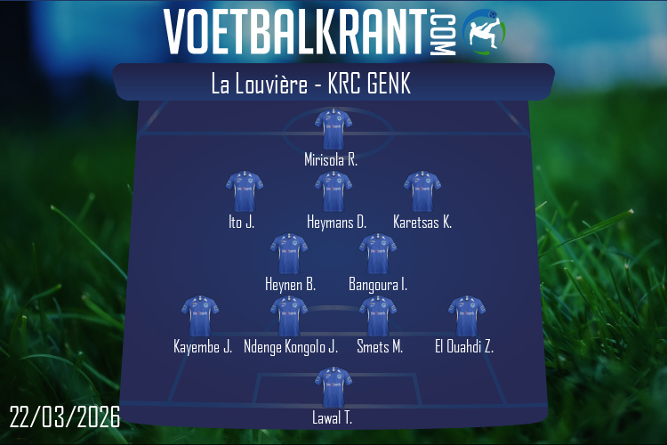 Opnieuw zo'n vreemde fase van balverlies door La Louvière. Karetsas krijgt het leer in zijn voeten en wil de bal plaatsen in plaats van de vrijstaande Heymans te bedienen. De bal draait net te veel waardoor Peano wel duikt maar niet moet ingrijpen