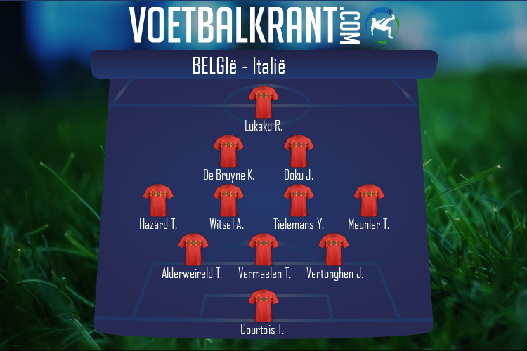 Lukaku speelt meer op rechts, zoals tegen Brazilië. Daardoor krijgt De Bruyne ruimte.