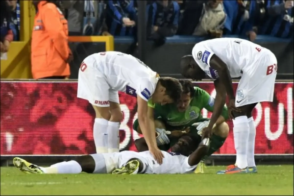 In de tweede helft van de partij tussen Club Brugge en KRC Genk maakte Kara Mbodji op een onaangename manier kennis met de grasmat van Jan Breydel. De zesvoudig Senegalees international kwam slecht neer en viel pardoes op zijn slaap.