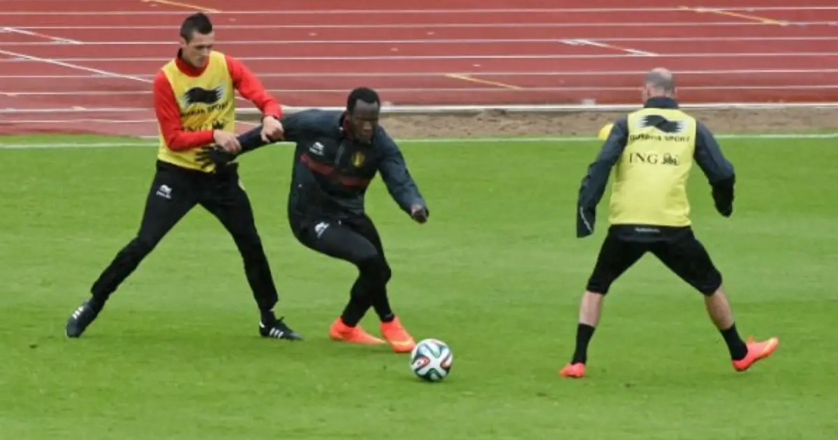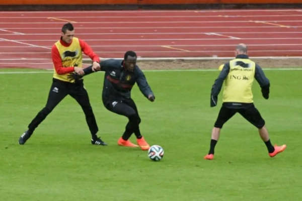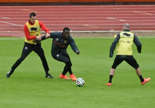 Twee zaken. Eerst en vooral wat de mogelijke basisploeg zal zijn tegen Zweden. Wilmots liet de Rode Duivels namelijk een partijtje afwerken met elf tegen elf. Team 1 - dat met 4-0 won van een team waar materiaalman Kevin Bogemans, afgelopen seizoen in vierde klasse actief bij Wolvertem, degelijk insprong. "Je zal het wel gezien hebben hoe we misschien zullen spelen tegen Zweden", gaf Wilmots prijs. "Maar ik heb geen basisopstelling. Tegen Tunesië zullen er weer anderen spelen."