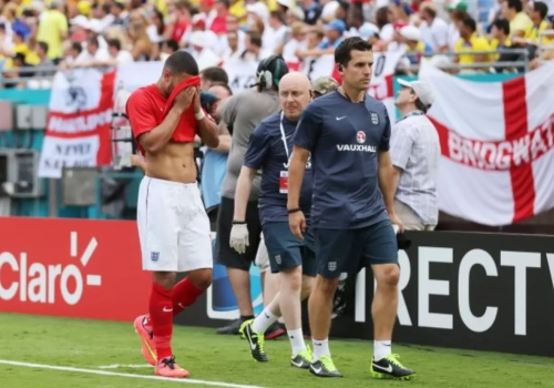Alex Oxlade-Chamberlain is twijfelachtig voor het WK in Brazilië. In de oefenwedstrijd tegen Ecuador blesseerde de flankspeler van Engeland zich aan zijn knie.