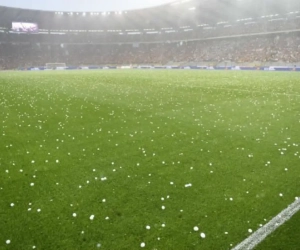 Terwijl heel wat mensen het veld van het Koning Boudewijnstadion proberen te ontruimen, zien enkele supporters hun kans om het veld te bestormen.