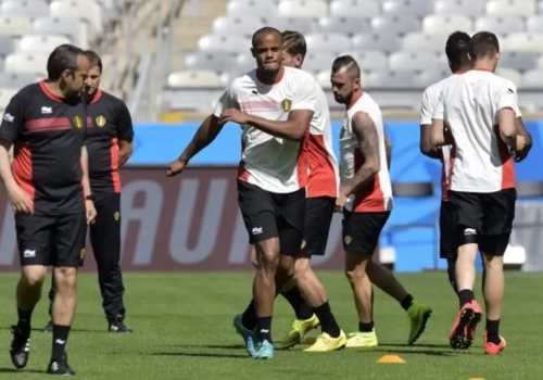 In het stadion van Belo Horizonte werkten de Rode Duivels zonet de laatste training af voor hun eerste wedstrijd op dit WK. Morgen begint het eindelijk met de partij tegen Algerije. Van het kwartiertje open training krijgt u hier de foto's.