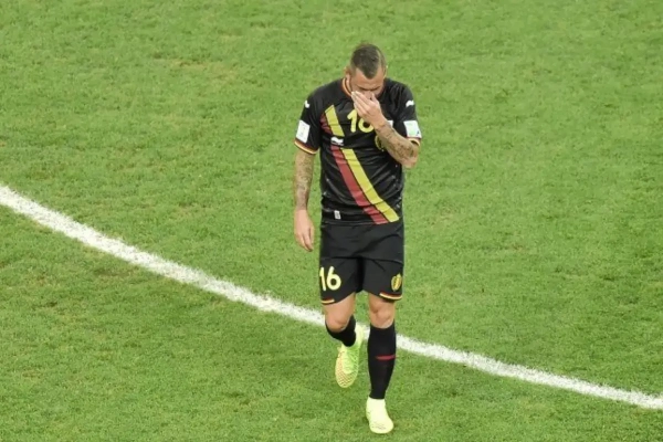 Over de rode kaart bestaat weinig twijfel. Defour ging over de bal op het been van Kim staan en kreeg meteen een rode prent onder de neus geschoven van de Australische ref. De middenvelder gaf meteen een hand aan zijn slachtoffer en was duidelijk schuldbewust.