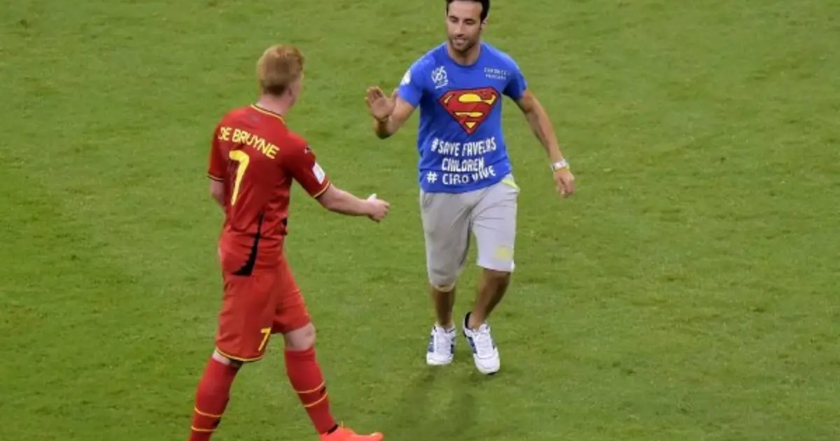 Iets voor halverwege de eerste helft werd de Arena Fonte Nova in Salvador opgeschrikt door een veldbestormer. De man kreeg er bijna drie volle rondjes uit alvorens hij door de trage security van het veld gehaald werd, ongezien.