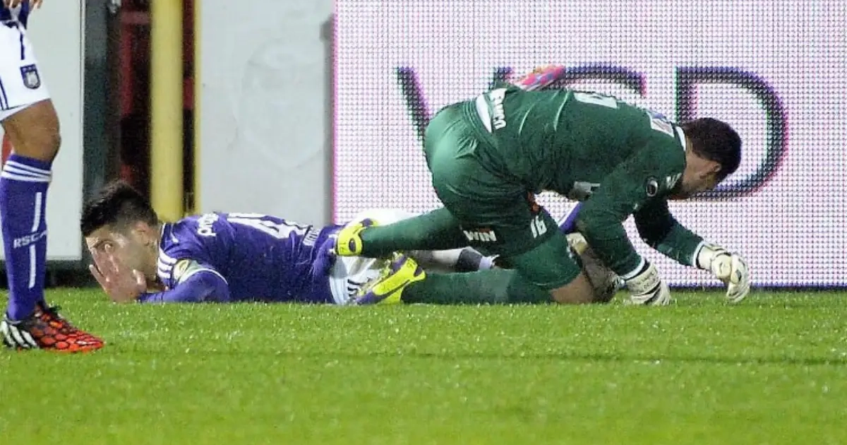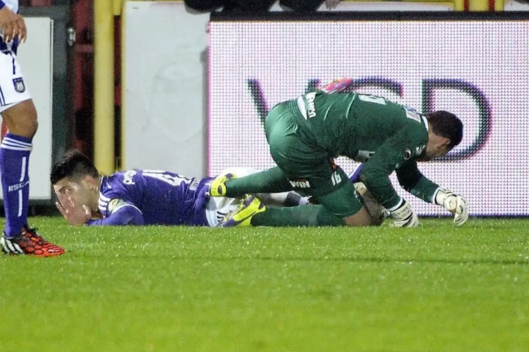 In het duel tussen Kortrijk en Anderlecht van vorige week gingen Mitrovic en Keet stevig met elkaar in duel. De aanvaller van paars-wit probeerde in extremis nog bij de bal te geraken, maar trok met de vijandelijke goalie in zicht net op tijd zijn been terug. Toch had Keet het niet zo begrepen op de actie van de Serviër en deelde hem een ferme trap in de rug uit.