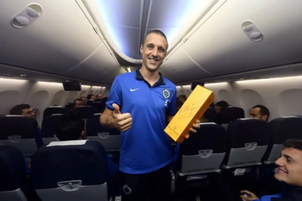 De sfeer zat er na de overtuigende 0-4-zege tegen Kopenhagen goed in bij Club Brugge. Op de tonen van Bará Berê werd de terugvlucht naar België op amusante wijze ingezet. Doelman Mathew Ryan legde de unieke taferelen vast op beeld!