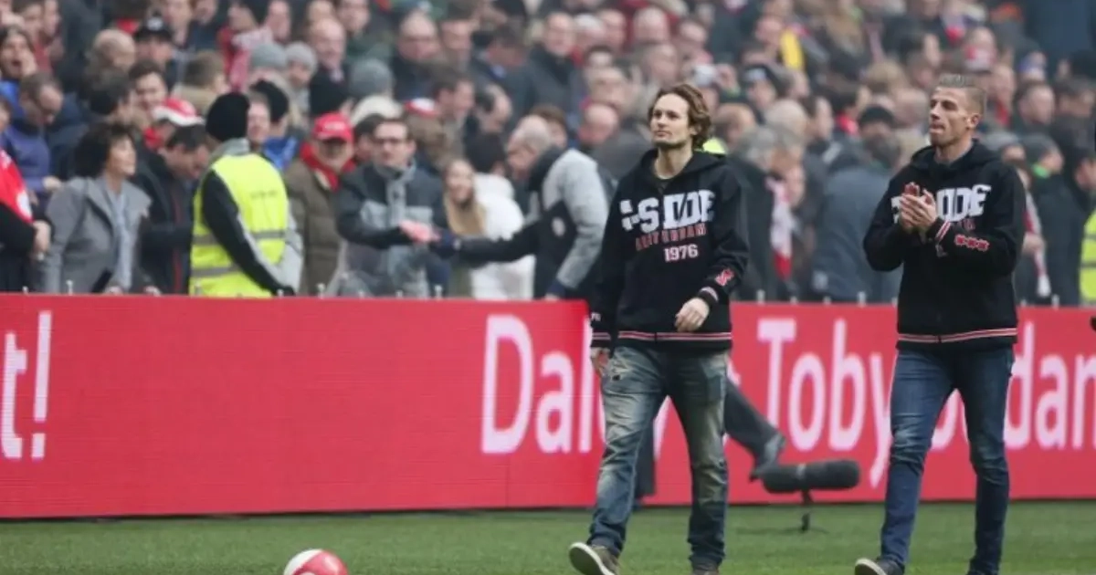 — AFC Ajax (@AFCAjax) 25 januari 2015Oud-klasgenoten Alderweireld en Blind op het veld. Ooit samen in de klas, toen samen kampioen, nu samen afscheid nemen. #ajafey
