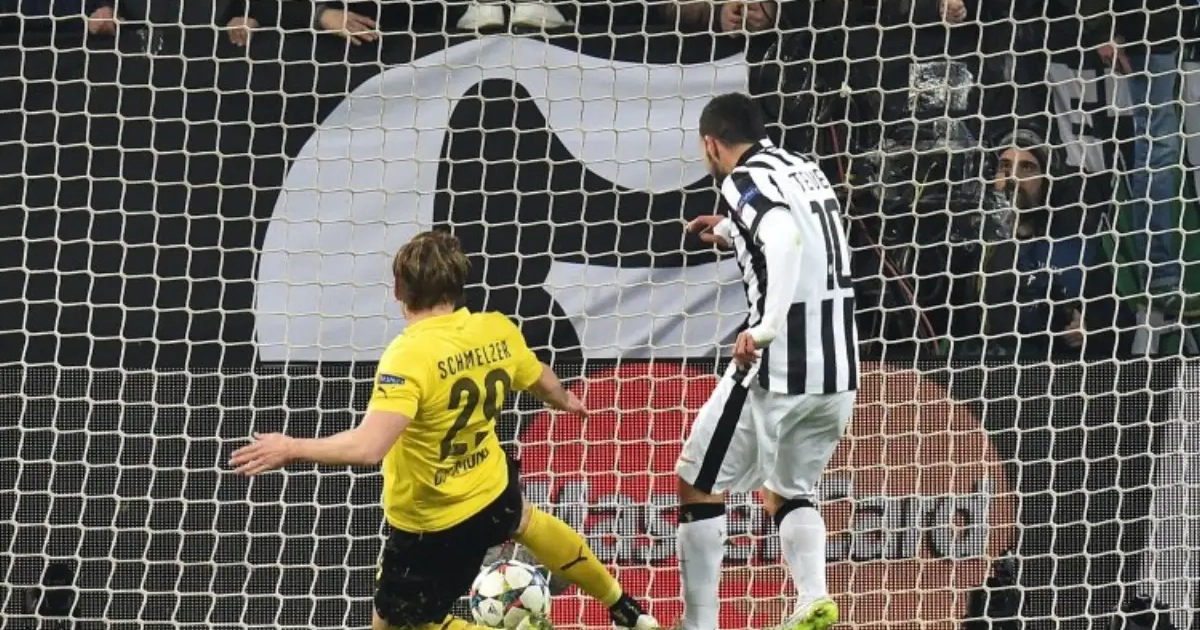 Achtste finales van de Champions League, maar wel twee flaters van formaat in de beginminuten. Tevez scoorde ongetwijfeld de makkelijkste goal uit zijn carrière na lossen van Buffon. Man in vorm Reus stelde na mistasten van Chiellini al snel gelijk.