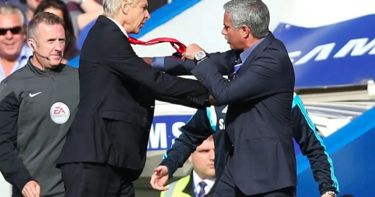 Mourinho looft journalist na 'cheeky question': "Hoe hard Wenger me pushte?"