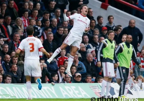 Middlesbrough domineerde van bij het begin en halfweg de eerste helft kwam het verdiend op voorsprong. Adomah kwam naar binnen en legde de bal klaar voor Lee Tomlin, die de het leer mooi in de bovenhoek krulde. 1-0 was ook de ruststand.