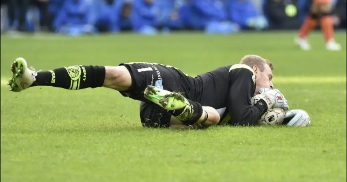 "Het doelpunt? Ik moest me al heel ver strekken om die bal nog te halen. De Ceulaer schoot die precies in de hoek, dus moest ik heel diep gaan. Ik kon de bal niet verder wegduwen. Door het droge veld bleef die wat steken."