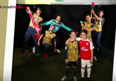 En dus kan er wel eens gelachen worden in en rond het Emirates Stadium. Tijdens een fotosessie met enkele fans in de nieuwe shirts, namen de sterren van Arsenal hun aanhangers op ludieke wijze in de maling!