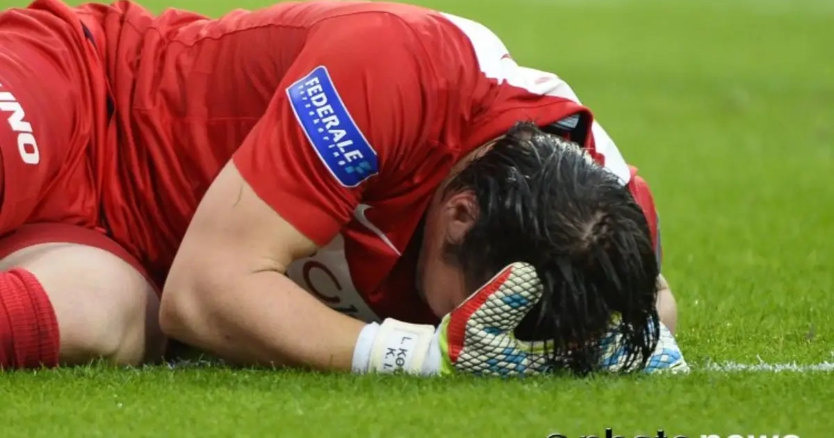 Laszlo Köteles moest afgelopen zondag zwaar gehavend naar de kant na een botsing met Frank Acheampong. De Hongaarse doelman hield er twaalf hechtingen en een lichte hersenschudding aan over.