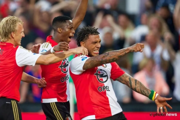 Dirk Kuijt was - na de pauze weliswaar - de grote man bij Feyenoord met twee doelpunten. De Rotterdammers gingen overigens rusten met een 1-0-voorsprong na een eigen doelpunt van Dirk Marcellis.