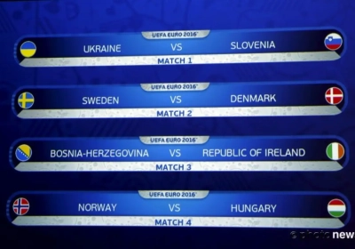 Een Scandinavisch onderonsje dus richting het EK. Slechts één van hen zal aan het langste eind trekken. Bosnië, derde in de groep van de Rode Duivels, ontmoet Ierland. Verder neemt Oekraïne het op tegen Slovenië en duelleert Noorwegen met Hongarije.