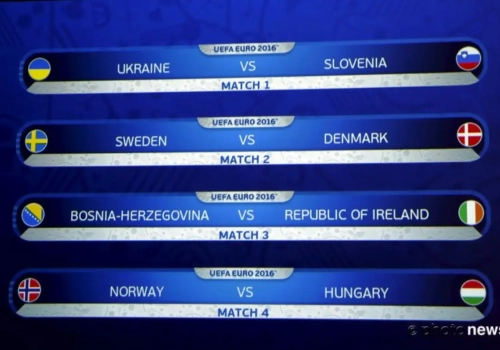In het Zwitserse Nyon is zondagmiddag geloot voor de barrages richting EURO 2016. Zlatan Ibrahimovic speelt met Zweden tegen Denemarken.