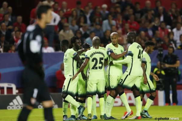 Nog in Spanje was ook het treffen tussen Sevilla en Manchester City een mooie affiche. Minder spanning daar: met Kevin De Bruyne op de bank nam City een vliegende start. Na goed tien minuten stond het al 0-2 via Sterling en Fernandinho. Sevilla kwam nog terug tot 1-2, maar na de 1-3 van Bony kwam de zege van City nooit meer in gevaar. Kompany en co zijn al verzekerd van een plaats in de knock-out fase.