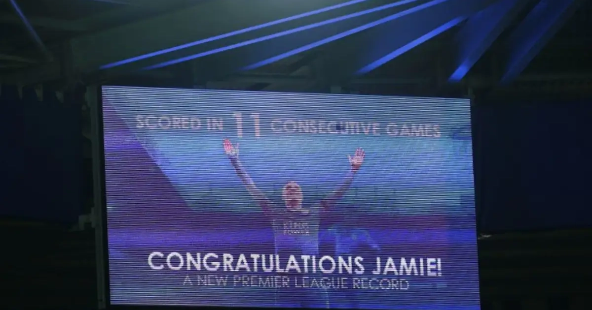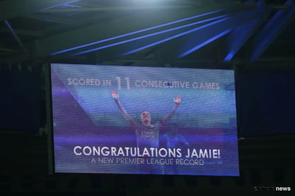 En dat deed de spits van het verrassende Leicester. Uitgerekend tegen United verbrak hij op die manier het record van Ruud Van Nistelrooy, door voor de elfde wedstrijd op rij te scoren in de Premier League. In die elf matchen was hij goed voor 13 treffers.