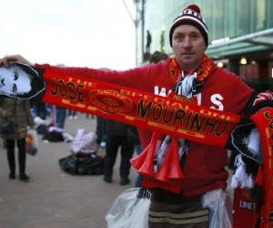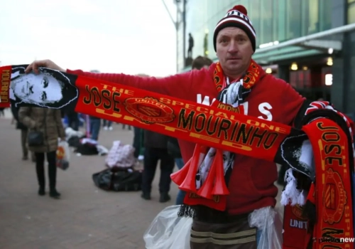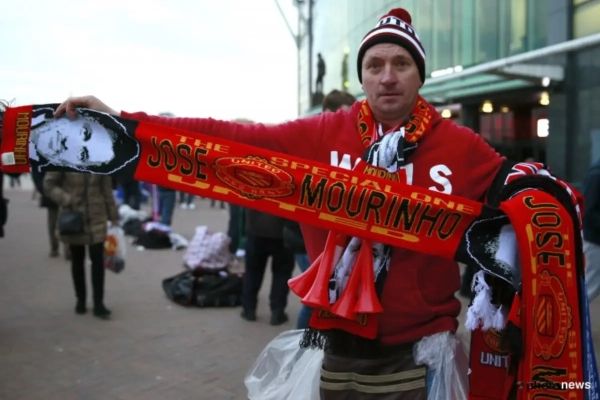 Ondertussen voor het stadion van Man United: sjaals met José Mourinho te koop!