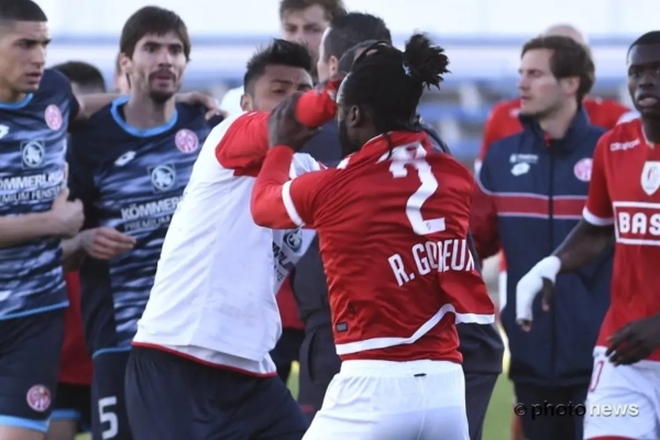 Standard heeft een vriendschappelijke wedstrijd van Mainz 05 gewonnen met 3-0, maar de aandacht ging vooral naar een vechtpartij. De poppetjes gingen helemaal aan het dansen na een tackle van Corintin Fiore.