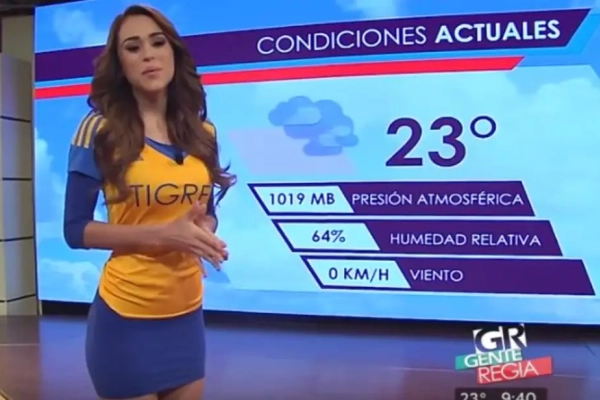 Een week geleden stond de kraker in Mexico tussen Monterrey en Tigres op het programma. Reden genoeg voor voetbalfan Yanet Garcia om het weer te presenteren in nauwelijks meer dan een voetbalshirt van Tigres. Sindsdien is er een hittegolf bezig in Mexico, als u begrijpt wat we bedoelen.