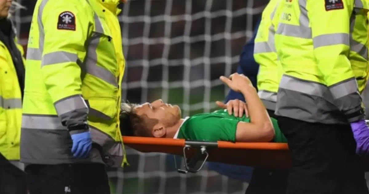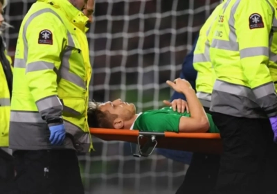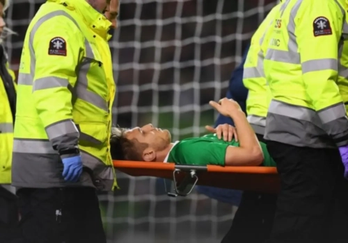 In de oefenwedstrijd tussen Ierland en Zwitserland moest de Ierse aanvaller van het veld gedragen worden na een botsing met Norwich-verdediger Timm Klose.