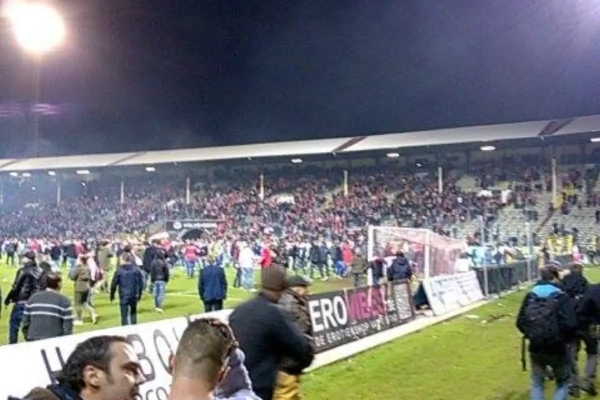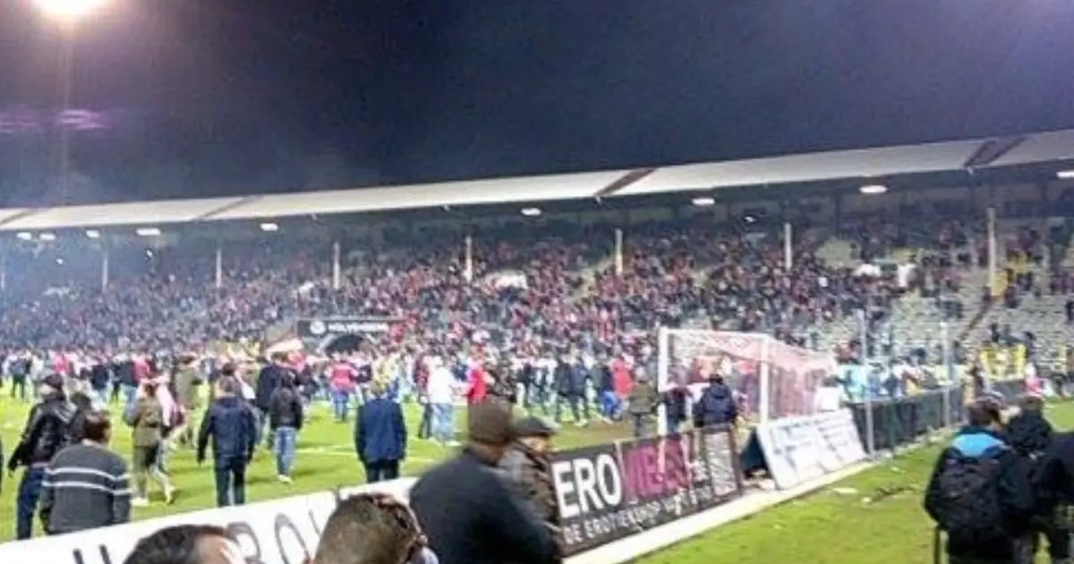 Er hing even een grimmig sfeertje in het stadion. De ordediensten en politie moesten een waterkanon gebruiken om de rust terug te brengen. Uiteindelijk waren de relletjes van korte duur. De rust is ondertussen helemaal teruggekeerd op de Bosuil.
