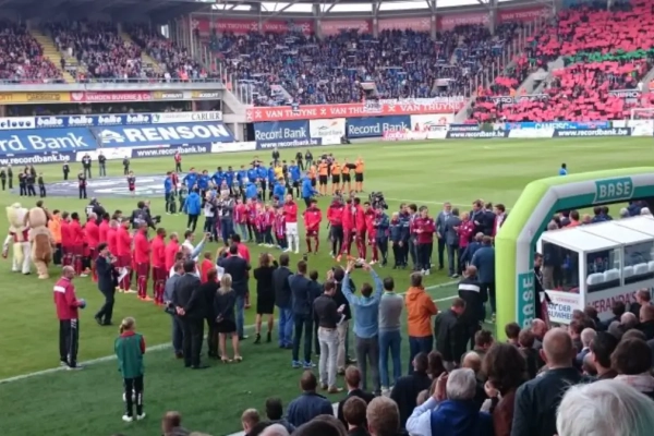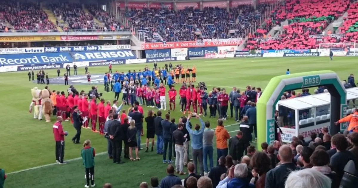 De spelers van Zulte Waregem stonden klaar om de spelers van Club Brugge te eren en deden dat uiteindelijk met een erg knappe erehaag.