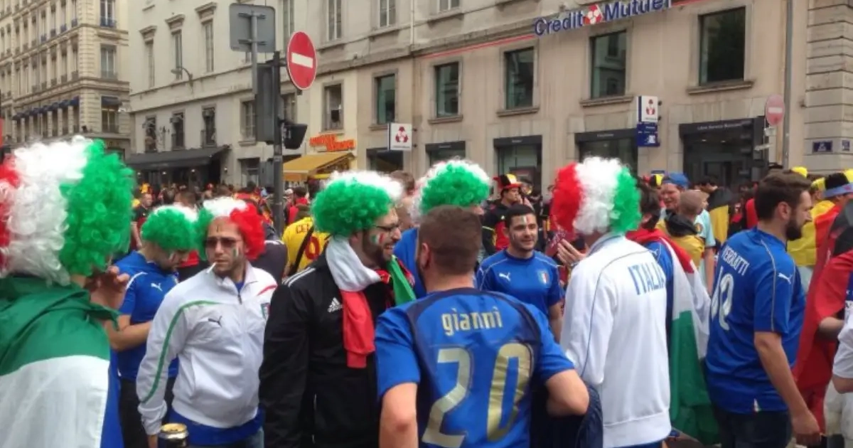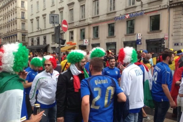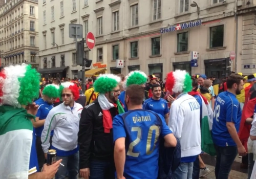 Nu de Belgen in Lyon bijna aan hun wedstrijd beginnen, komt het meeste uit dit dagboek van onze man on the road: Johan Walckiers. Samen met zijn franstalige collega van Walfoot, Florian Holsbeeck trok hij door Lyon en trof er deze bende Italo-Belgen aan.