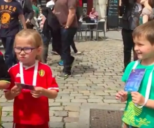 Zo mochten drie piepjonge supporters van onze nationale ploeg dankzij hamburgerketen McDonald's mee het veld op met de Rode Duivels. Karsten, Lotte en Tibe deden hun verhaal bij onze reporter in Lyon.