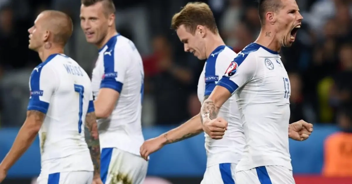 De vuurpijl werd afgestoken na de 1-2 van Rusland. Daardoor dreigt nu de uitsluiting voor het land: de UEFA had immers laten verstaan dat bij verdere incidenten in het stadion diskwalificatie zou volgen.