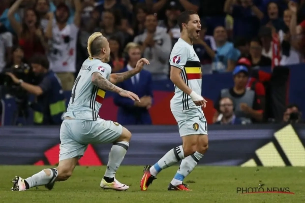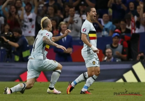 "We mogen nu een klein feestje bouwen, maar we moeten ons voorbereiden op vrijdag. We mogen verder dromen, maar we zijn op dit moment nog nergens. We moeten het match per match nemen", aldus Hazard op Eén.