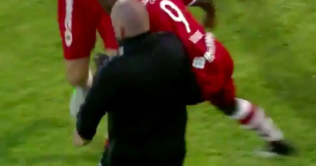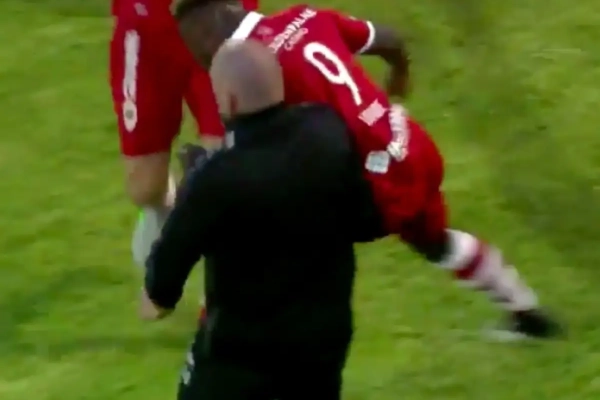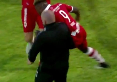 Stallone Limbombe - de oudere broer van Club Brugge-speler Anthony - sprintte naar de zijlijn en was op zoek naar één man in het bijzonder: zijn trainer Fred Vanderbiest. Limbombe deed teken naar zijn schouder, maar Vanderbiest bleek net niet snel genoeg te beseffen wat er zou volgen...
