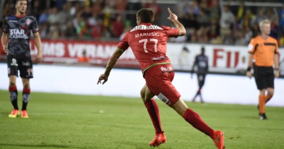 Adam Marusic speelde een redelijk anonieme wedstrijd op de rechtsachter, gisteren in Oostende. Niet meteen heel goed, niet meteen heel slecht. Tot Vanderhaeghe hem een rij hoger zette en de Servische Montenegrijn helemaal ontplofte.