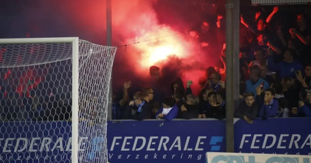 De eerste helft tussen Moeskroen en Club Brugge werd ontsierd door een rookbom vanuit het vak van Club Brugge. Die actie kon op weinig begrip rekenen.