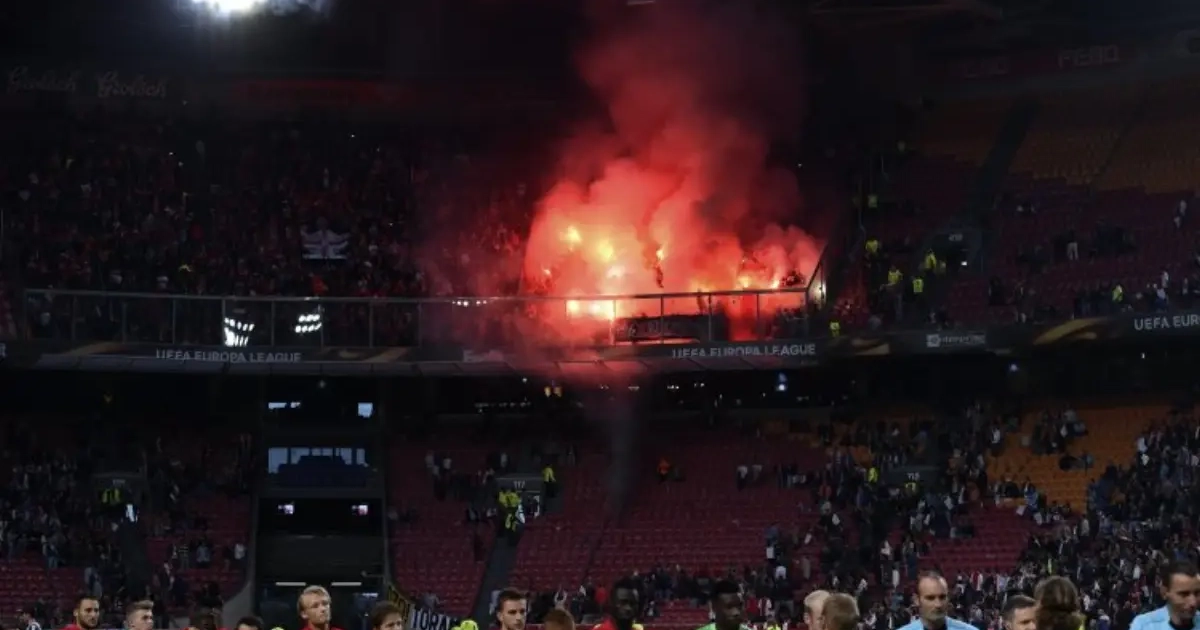 De fans van de Rouches staken massaal vuurpijlen aan in het stadion van Ajax Amsterdam, wat hen natuurlijk ook een boete zal opleveren bij de UEFA.
