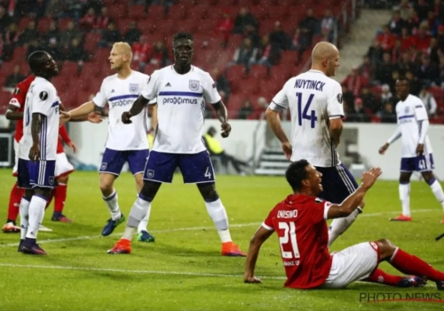 Voor Olivier Deschacht viel het experiment in de Anderlecht-verdediging in de eerste helft op bezoek bij Mainz niet al te goed uit. Hij beging al snel een strafschopfout.