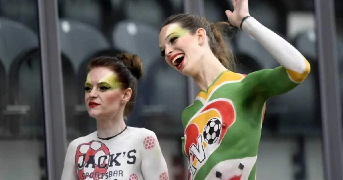 Streakers op een voetbalveld? Die worden niet langer in beeld genomen en zo subtiel mogelijk de deur gewezen. Maar mooie vrouwen in bodypaint? Daar worden al eens uitzonderingen voor gemaakt.