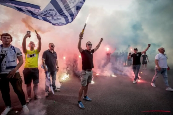 De Gentse spelersbus werd verwelkomd met heel wat vuurwerk en ambiance. Als dit de spelers niet voldoende motivatie geeft, weten we het ook niet meer. Al was dat allicht geen probleem geweest in deze topper.
