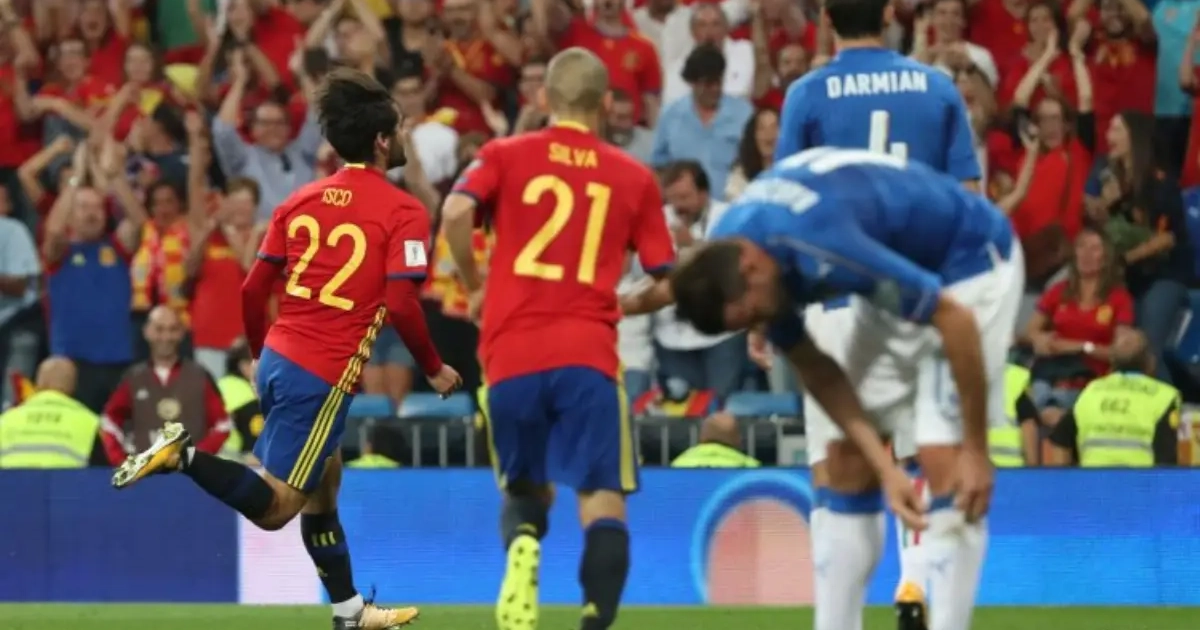 Real Madrid-middenvelder Isco toonde Spanje de weg in 'zijn' Santiago Bernabeu. Hij scoorde twee keer voor de rust, waaronder een geweldige vrije trap (zie video). Morata zette nog de kers op de taart voor een klinkende 3-0-zege.