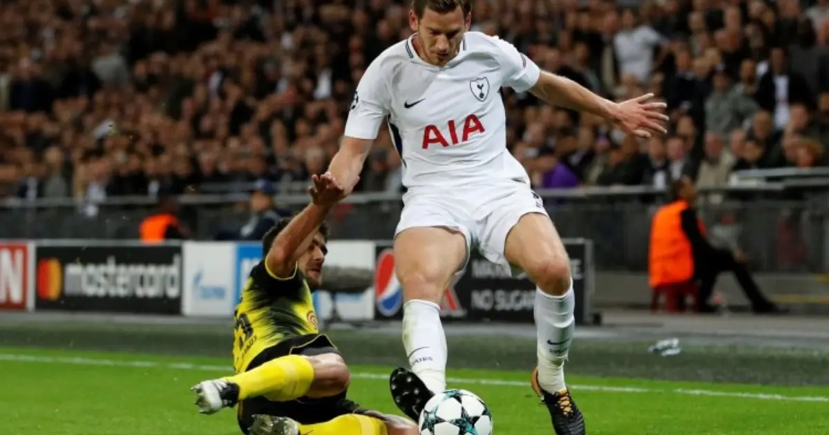 Jan Vertonghen schudde met Tottenham Hotspur dan wel 'de vloek van Wembley' van zich af door Borussia Dortmund te kloppen, hij baalde stevig na een tweede gele kaart.