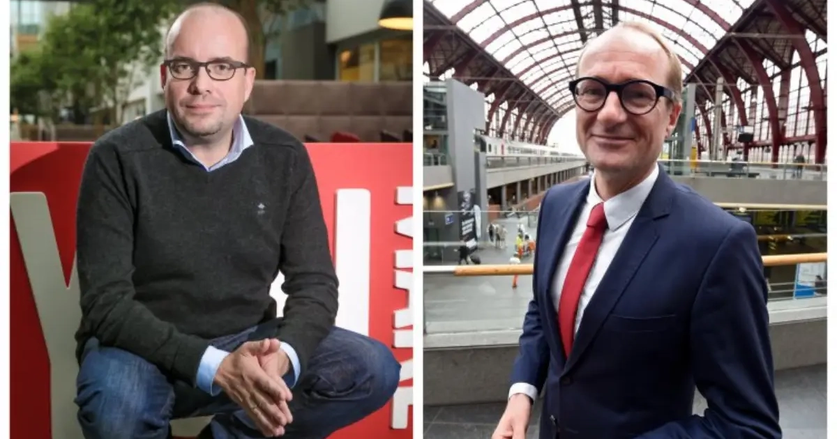 Minister Ben Weyts (Anderlecht) zet DJ Sven Ornelis (Club Brugge) op zijn plaats: "Kampioenenbal? Dat duurt toch gewoon 11 jaar voort?"
