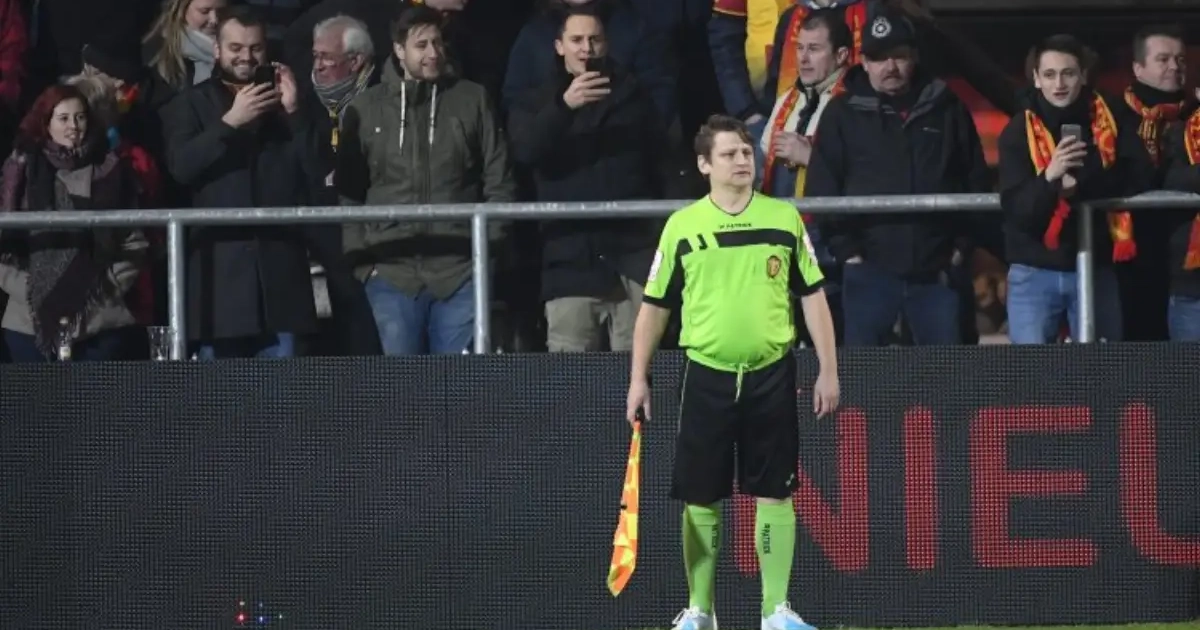 Tijdens KV Mechelen - Racing Genk kregen we het gloriemoment van Luc Bosmans. De scheidsrechter uit eerste provinciale werd uit het publiek geplukt om in te vallen als lijnrechter.