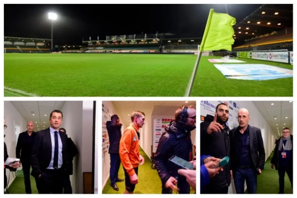 Brandweer, politie en clubafgevaardigden kwamen vlak voor de wedstrijd met z'n allen samen en kwamen tot de conclusie dat voetballen geen optie was vanwege de problemen met de tribunes.