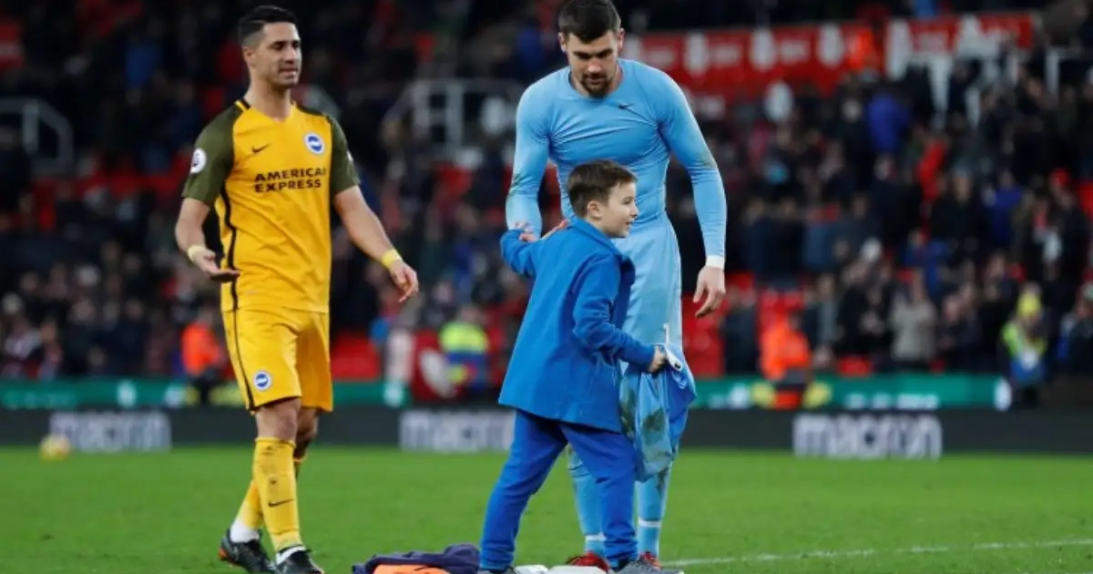 The heartwarming moment @OfficialBHAFC goalkeeper Matt Ryan gave his shirt to a young child after saving a last minute penalty!
