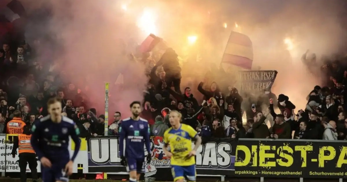 Dat kan er wel nog bij... STVV-Anderlecht stilgelegd door rookbommen in het bezoekersvak